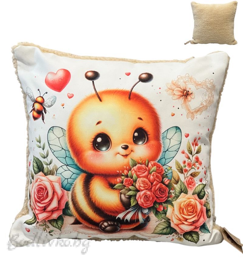 ДЕКОРАТИВНА ВЪЗГЛАВНИЦА ПЧЕЛИЧКА С БУКЕТ