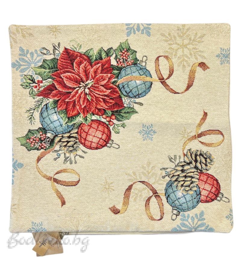 КАЛЪФКА за възглавничка, КОЛЕДНА ЗВЕЗДА С ГЕРЛЯНДИ, ЖАКАРД, 40/40см.