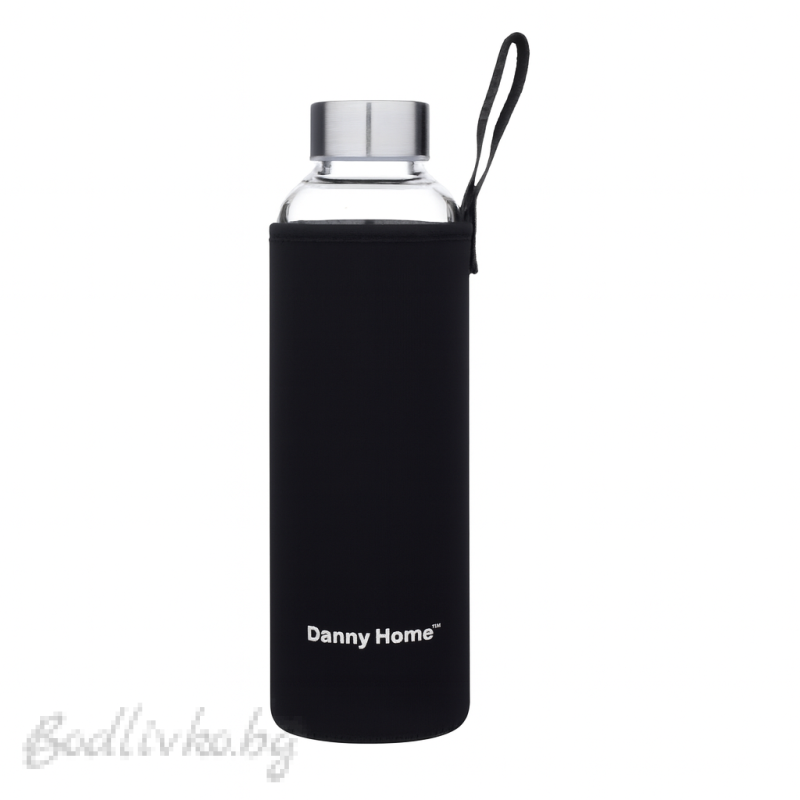 СТЪКЛЕНО ШИШЕ ЗА ВОДА , DANNY HOME, 550мл., С МЕКО КАЛЪФЧЕ