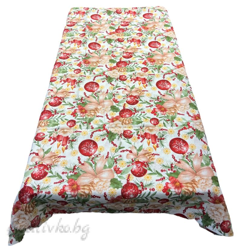 КОЛЕДНА ПОКРИВКА ЗА МАСА, ЦВЕТЯ С ТОПКИ