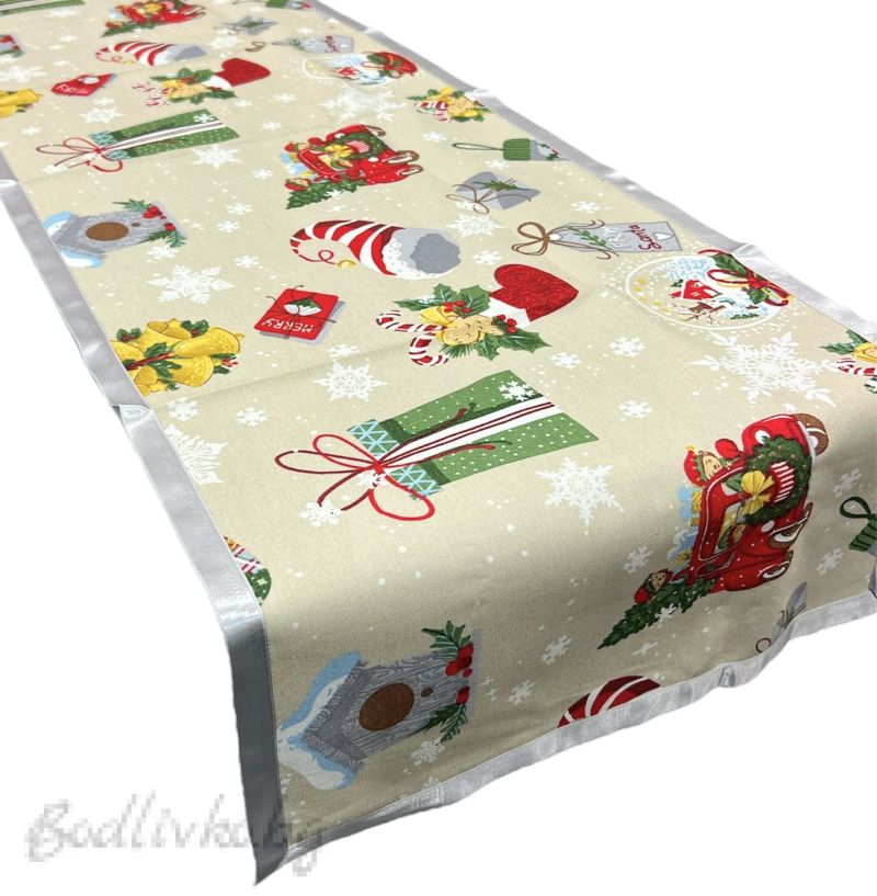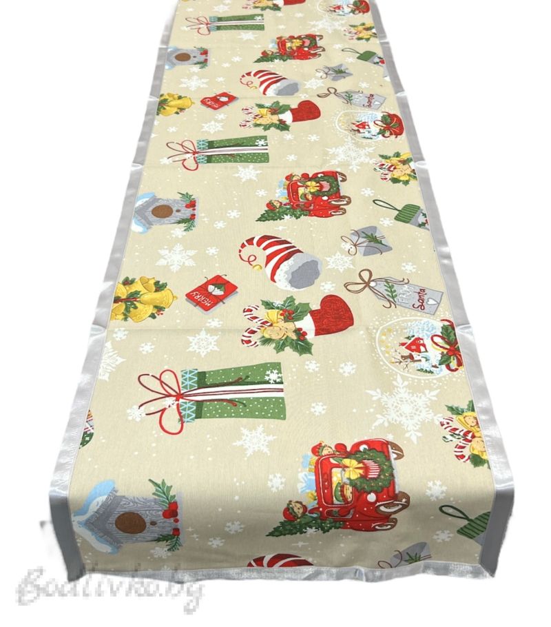 КОЛЕДЕН ТИШЛАЙФЕР ЗА МАСА, КОЛИЧКИ С ПОДАРЪЧЕТА, ХИДРОФОБИРАН ПЛАТ - 40/160СМ.