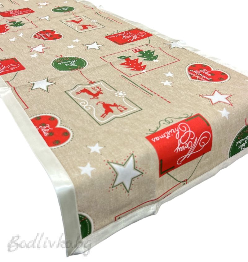 ``` * Изработен от 60% памук и 40% полиестер * Ярки и весели коледни мотиви * Лесна поддръжка и дълготрайна употреба * Подходящ за всеки тип интериор.