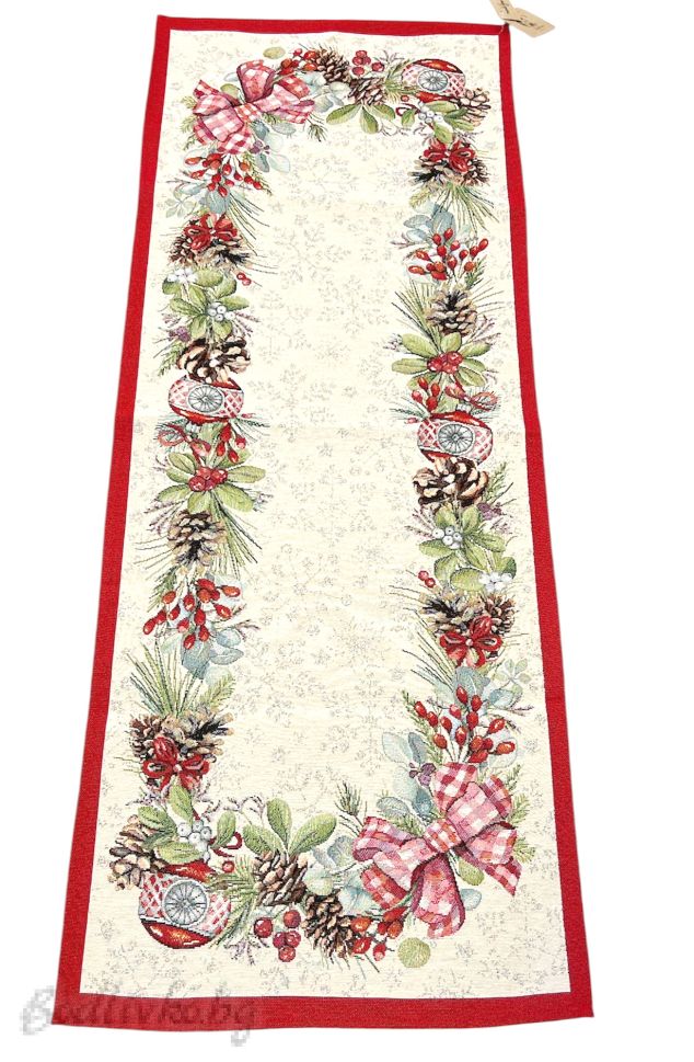 Внесете елегантност и стил във вашия дом с този красив жакардов тишлайфер! Декориран с КОЛЕДНИ МОТИВИ, той е перфектният акцент за вашата празнична трапеза.