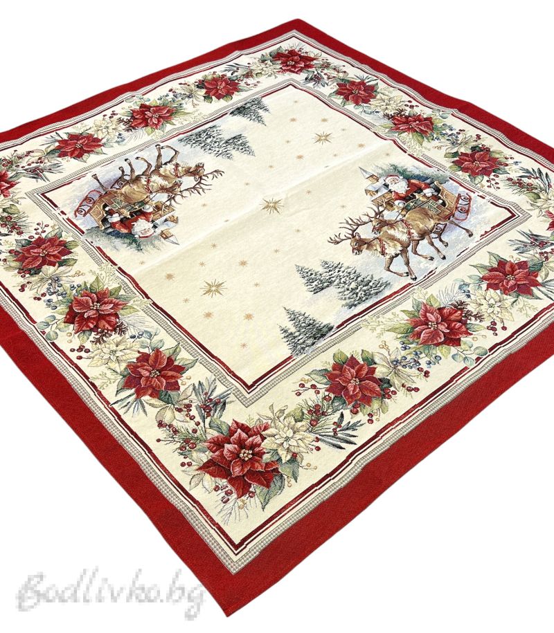 Пренесете духа на Коледа във вашия дом с нашето елегантно жакардово каре "Коледа с Дядо Коледа"! Този изискан текстилен акцент ще внесе топлина и празнично настроение на вашата трапеза или като декоративен елемент в интериора.