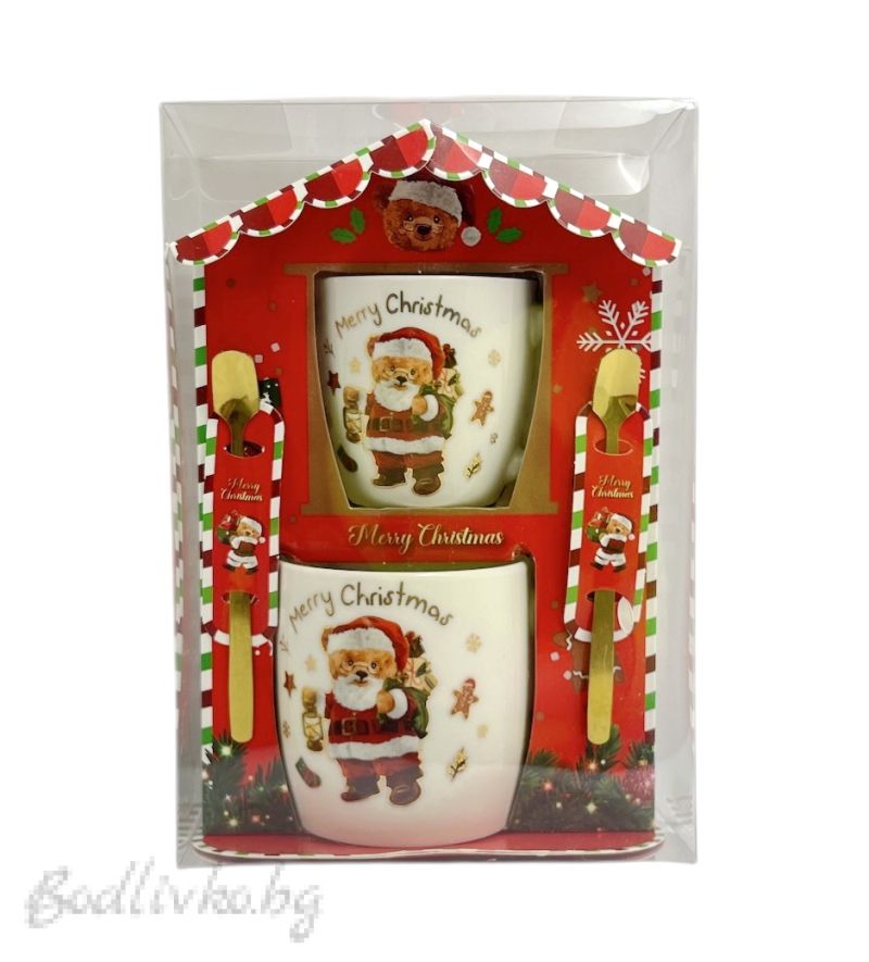 Комплектът е опакован в празнична кутия във формата на коледна къщичка, което го прави готов за подаряване. Чашите са декорирани с коледни мотиви, които ще внесат топлина и уют във вашия дом.