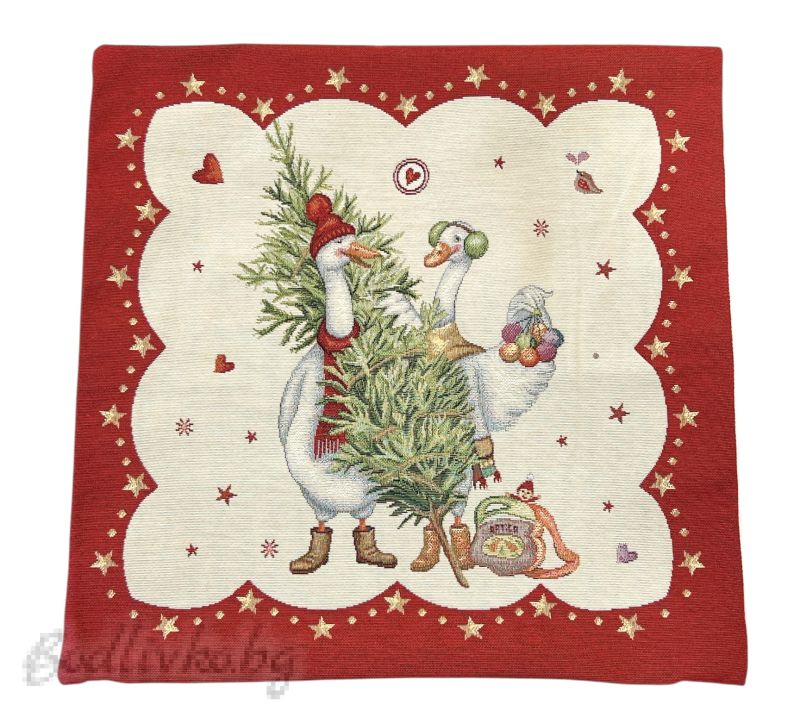 КАЛЪФКА за възглавничка, КОЛЕДНИ ГЪСКИ, ЖАКАРД, 45/45см.