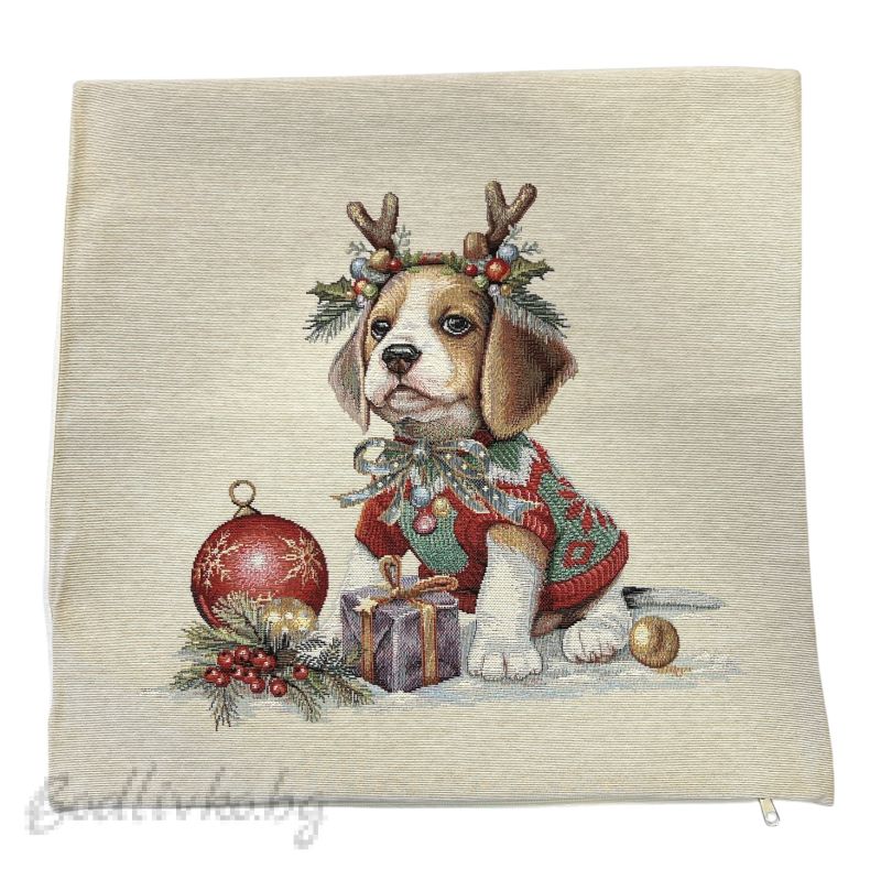 КАЛЪФКА за възглавничка, КОЛЕДНО КУЧЕНЦЕ, ЖАКАРД, 45/45см.