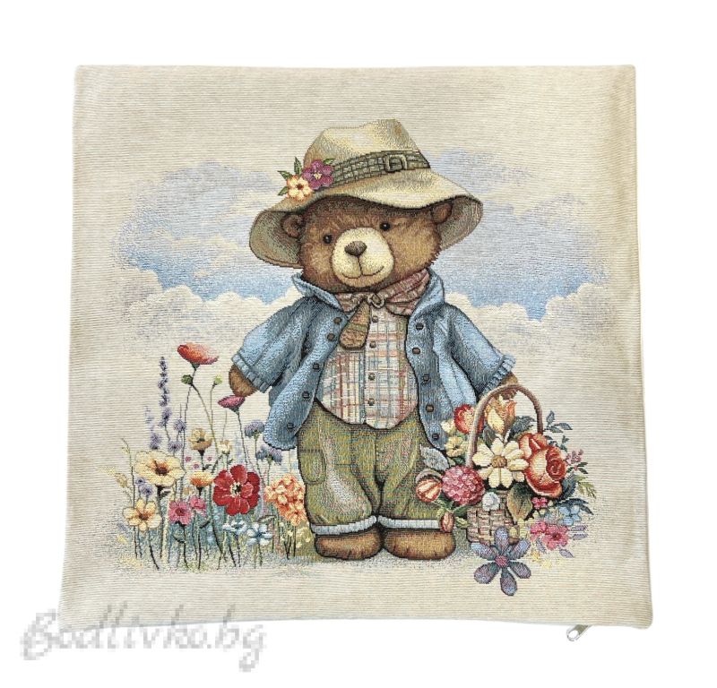 КАЛЪФКА за възглавничка, МЕЧЕ С ЦВЕТЯ, ЖАКАРД, 45/45см.