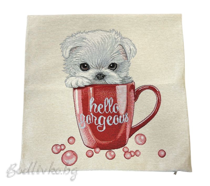 КАЛЪФКА за възглавничка, КУЧЕ В ЧАШКА, 45/45см.