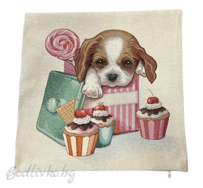 КАЛЪФКА за възглавничка, КУЧЕ С МЪФИНИ, 45/45см.