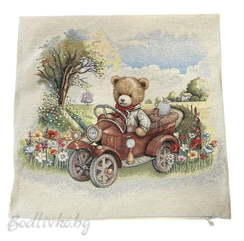 КАЛЪФКА за възглавничка, МЕЧЕ В КОЛА 45/45см.