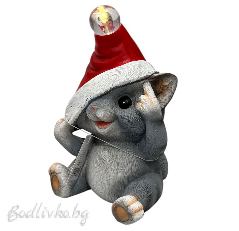 КОЛЕДНА ДЕКОРАЦИЯ - КОТЕ СЪС СВЕТЕЩА ШАПКА 17СМ.