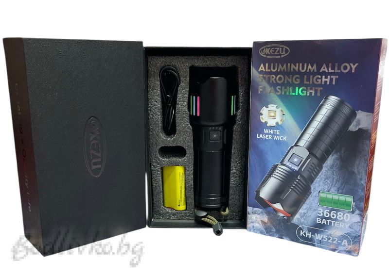 Фенерът е опакован в луксозна кутия, което го прави идеален подарък за всеки любител на приключенията или професионалист, нуждаещ се от надежден източник на светлина. Кутията е не само красива, но и осигурява защита на фенера по време на транспортиране и съхранение.