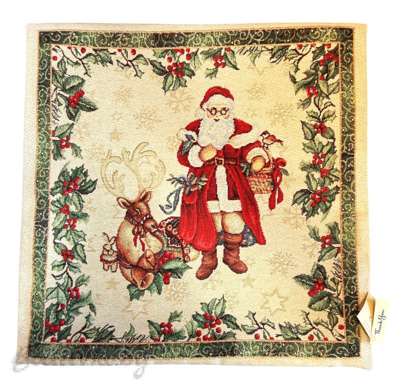Уникален дизайн: Калъфката е украсена с детайлен гоблен, показващ Дядо Коледа с подаръци, заобиколен от празнични мотиви. Богатата цветова палитра и изящните детайли правят този аксесоар истинско произведение на изкуството.