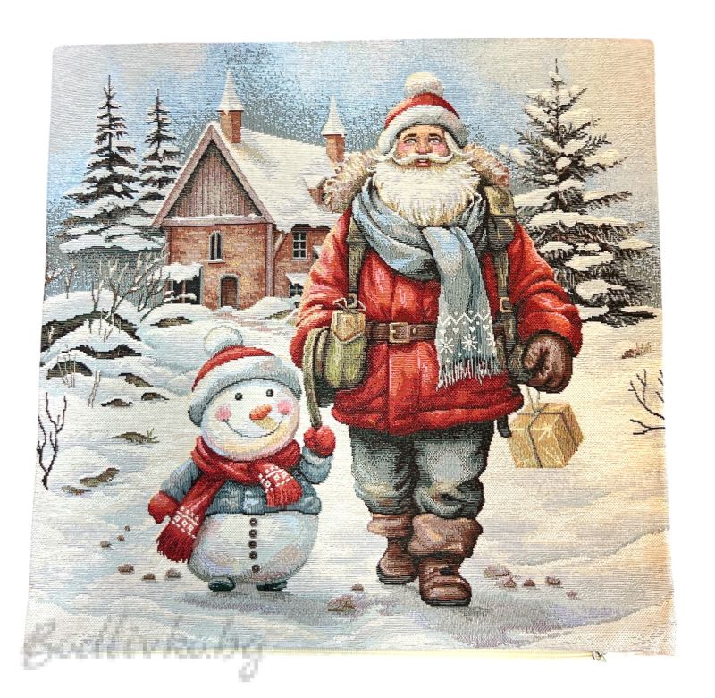 КАЛЪФКА за възглавничка, ДЯДО КОЛЕДА СЪС СНЕЖЕН ЧОВЕК, 45/45см.