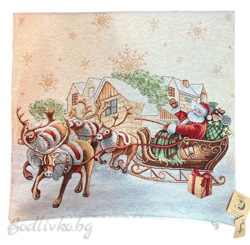 Добавете коледна магия в дома си с нашата калъфка за възглавничка "Дядо Коледа с шейна"!