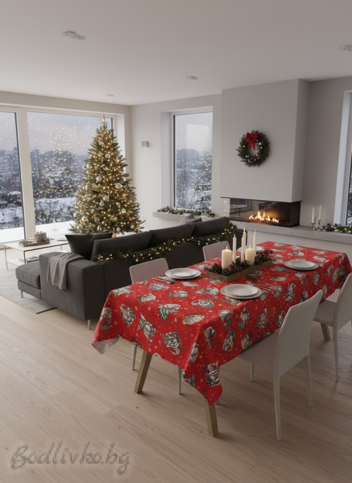 Подарете си истинско коледно настроение с нашата Коледна покривка за маса "Червена Коледа"! Превърнете вашата трапеза в сърцето на празничните тържества и създайте незабравими спомени със семейството и приятелите.