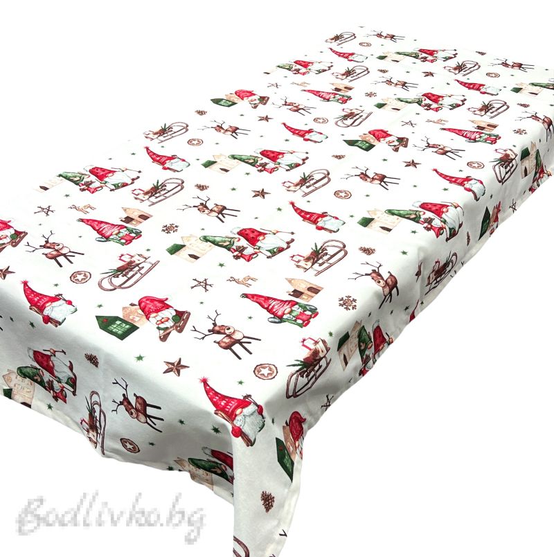 Създайте незабравима коледна атмосфера с нашата прекрасна покривка за маса "Гномчета с еленчета"!