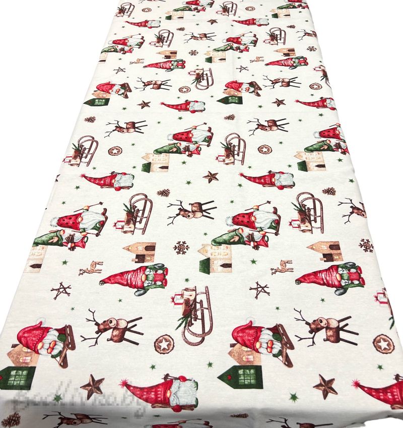 Внесете коледно настроение във вашия дом с нашата очарователна коледна покривка за маса, украсена с празнични гномчета и еленчета! Тази покривка е идеалният начин да добавите нотка магия и топлина към вашата трапезария по време на празниците.