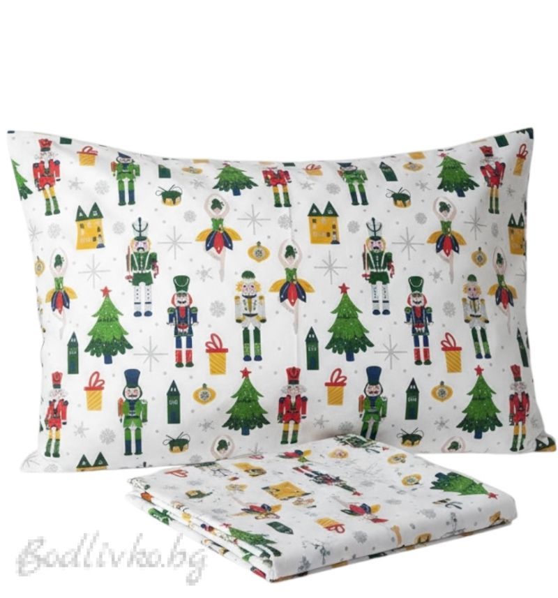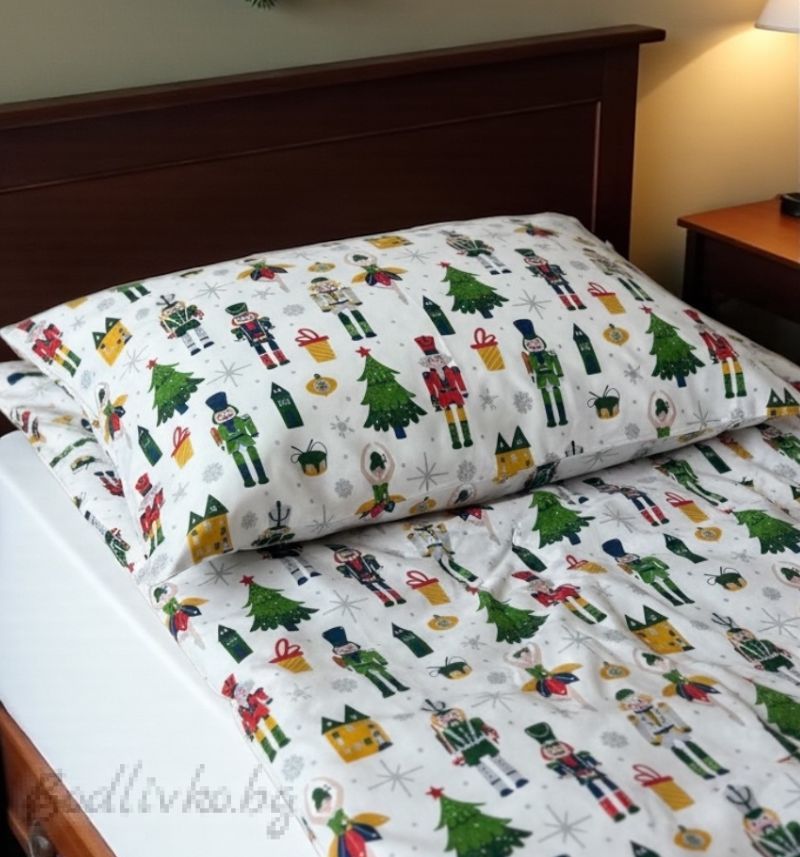 Коледен спален комплект за единично легло "ЛЕШНИКОТРОШАЧИ"- 100% памук (Ранфорс), 3 части
