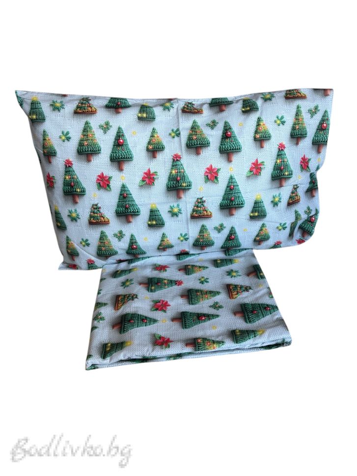Коледен комплект ЗА ЕДИНИЧНО ЛЕГЛО ЕЛХИ– 100% натурален памук (5Д Ранфорс), 3 части