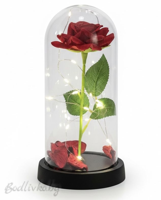 Пренесете магията на приказките във вашия дом с нашата светеща роза в стъкленица. Този изящен декоративен елемент е вдъхновен от класическата история "Красавицата и Звярът" и е създаден, за да внесе романтика и елегантност във всяко пространство.