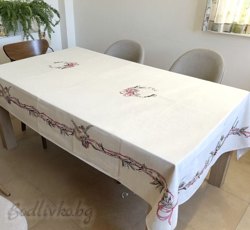 ПОКРИВКА ЗА МАСА ЖАКАРД, ВЕЛИКДЕН, ИЗЧИСТЕНА, БЯЛ ГЪЛЪБ, 140/180 СМ.