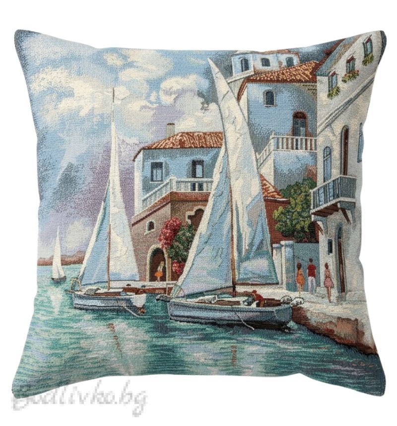 Добавете морски акцент към вашия дом с тази красива калъфка за възглавничка с мотив "Лодка". С размери 45/45см, тя е идеална за декорация на дивани, кресла или спалнята.