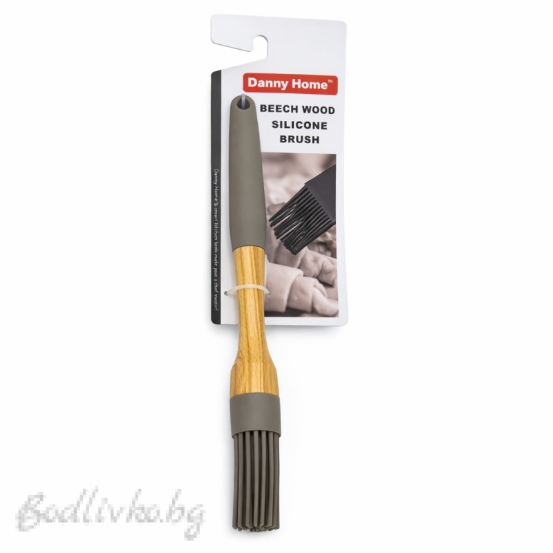 Ергономичната дръжка с дървен дизайн осигурява стабилен захват и комфорт при работа. Четката се почиства лесно и е подходяща за ежедневна употреба в домашни и професионални кухни.